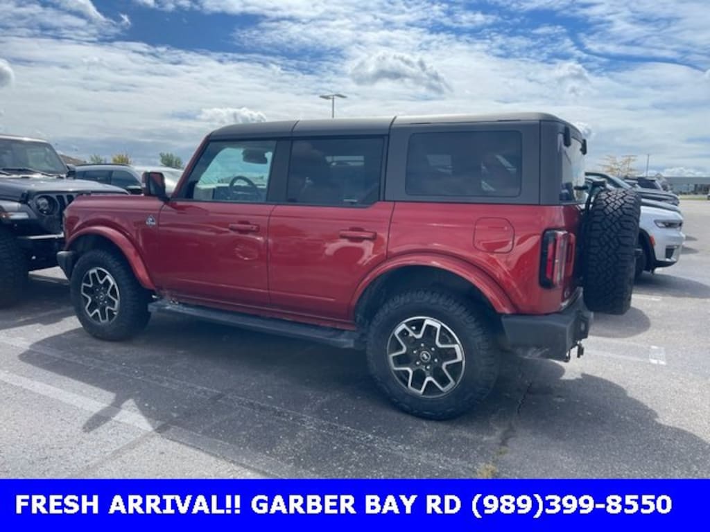 ** OUTER BANKS EDITION!! ** Priced below KBB Fair Purchase Price! ** CARFAX One-Owner ** LOCAL TRADE **, ** NAVIGATION **, ** NAV **, ** GPS **, ** BRAND NEW TIRES!! **, ** FULLY INSPECTED AND DETAILED!! **, ** WELL MAINTAINED!! **, ** EXCELLENT CONDITION!! **, ** B&O PREMIUM SOUND SYSTEM!! **, Bronco Outer Banks Advanced, 4D Sport Utility, 2.7L EcoBoost V6, 10-Speed Automatic, 4WD, Hot Pepper Red Metallic Tinted Clearcoat, Black Onyx Leather, 12" LCD Capacitive Touchscreen w/Swipe Capability, 2 Smart Charging USB Ports In Dashboard, 360-Degree Camera, Adaptive Cruise Control, Additional Sound Deadening, AM/FM radio: SiriusXM with 360L, Auto High-beam Headlights, Auto-dimming Rear-View mirror, Automatic temperature control, Carbonized Gray Molded-In-Color Hard Top, Connected Built-In Navigation, Dual front side impact airbags, Electronic Stability Control, Equipment Group 314A Lux Package, Evasive Steering Assist, Exterior Parking Camera Rear, Front Bucket Seats, Front dual zone A/C, Front fog lights, Front Parking Sensors, Front Row Top Panels Storage Bag, Front wheel independent suspension, Fully automatic headlights, Hard Top Sound Deadening Headliner, Heated door mirrors, Heated front seats, Heated Leather-Trimmed/Vinyl Bucket Seats, Heated Steering Wheel, Illuminated entry, Information on Demand Panel, Navigation system: Connected Navigation, Radio: B&O Sound System by Bang & Olufsen, Rear-Window Defroster & Washer, Remote keyless entry, Security system, Steering wheel mounted audio controls, SYNC 4, Telescoping steering wheel, Universal Garage Door Opener, Wireless Charging Pad.