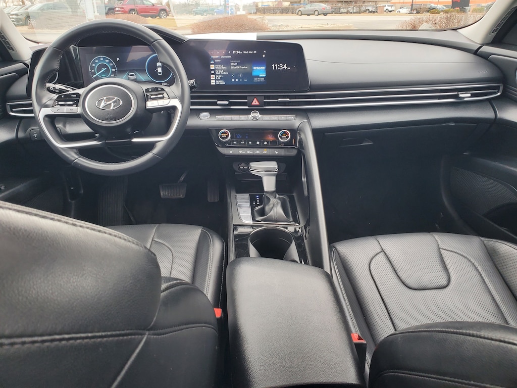 ** Recent Arrival! ** CARFAX One-Owner ** LOCAL TRADE **, ** NAVIGATION **, ** NAV **, ** GPS **, ** FULLY INSPECTED AND DETAILED!! **, ** APPLE CARPLAY **, ** ANDROID AUTO **, ** LOW MILEAGE!! **, ** WELL MAINTAINED!! **, ** EXCELLENT CONDITION!! **, ** POWER SUNROOF / MOONROOF **, Elantra Limited, 4D Sedan, I4, CVT, FWD, Fluid Metal, Black Leather, AM/FM radio: SiriusXM, Apple CarPlay & Android Auto, Auto High-beam Headlights, Auto-dimming Rear-View mirror, Automatic temperature control, Brake assist, Dual front side impact airbags, Electronic Stability Control, Exterior Parking Camera Rear, Front dual zone A/C, Fully automatic headlights, Heated door mirrors, Heated Front Seats, Heated front seats, Illuminated entry, Leather-Trimmed Seats, Navigation System, Power door mirrors, Power driver seat, Power moonroof, Radio: AM/FM/HD/SiriusXM Display Audio, Remote keyless entry, Security system, Telescoping steering wheel, Turn signal indicator mirrors, Variably intermittent wipers. 30/40 City/Highway MPG Odometer is 5539 miles below market average!