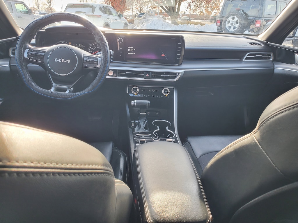 ** CARFAX One-Owner!! ** CLEAN CARFAX - NO ACCIDENTS!! **, ** LOCAL TRADE **, ** NAVIGATION **, ** NAV **, ** GPS **, ** FULLY INSPECTED AND DETAILED!! **, ** APPLE CARPLAY **, ** ANDROID AUTO **, ** ALL WHEEL DRIVE **, ** WELL MAINTAINED!! **, ** EXCELLENT CONDITION!! **, K5 GT-Line, 4D Sedan, I4, 8-Speed Automatic, AWD, Sapphire Blue, Black Cloth, AM/FM radio: SiriusXM, Apple CarPlay & Android Auto, Auto High-beam Headlights, Automatic temperature control, Cloth/Leatherette Seat Trim, Dual front side impact airbags, Four wheel independent suspension, Front dual zone A/C, Front fog lights, Fully automatic headlights, Heated door mirrors, Heated Front Bucket Seats, Heated front seats, Illuminated entry, Navigation System, Power door mirrors, Power driver seat, Radio: AM/FM/MP3 Audio System, Remote keyless entry, Security system, Telescoping steering wheel, Turn signal indicator mirrors, Variably intermittent wipers. 25/33 City/Highway MPG Odometer is 970 miles below market average!