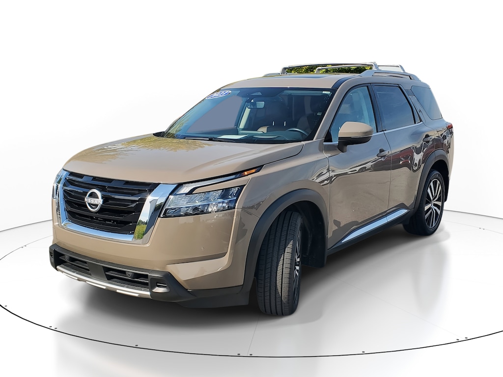 ** Recent Arrival! ** CARFAX One-Owner ** CLEAN CARFAX - NO ACCIDENTS!! **, ** LOCAL TRADE **, ** NAVIGATION **, ** NAV **, ** GPS **, ** PANORAMIC SUNROOF / MOONROOF **, ** BRAND NEW TIRES!! **, ** FULLY INSPECTED AND DETAILED!! **, ** APPLE CARPLAY **, ** ANDROID AUTO **, ** ALL WHEEL DRIVE **, ** BOSE PREMIUM SPEAKER SYSTEM **, ** WELL MAINTAINED!! **, ** EXCELLENT CONDITION!! **, Pathfinder Platinum, 4D Sport Utility, V6, 9-Speed Automatic, 4WD, Beige / Tan, Chestnut Leather, 3rd row seats: bench, AM/FM radio: SiriusXM, Auto High-beam Headlights, Automatic temperature control, Bose Premium Audio System, Brake assist, Dual front side impact airbags, Exterior Parking Camera Rear, Four wheel independent suspension, Front dual zone A/C, Fully automatic headlights, Garage door transmitter: HomeLink, Heads-Up Display, Heated & Cooled Front Bucket Seats, Heated front seats, Heated rear seats, Heated steering wheel, Leather steering wheel, Memory seat, NissanConnect w/Navigation & Services, Power driver seat, Power Liftgate, Power moonroof, Power passenger seat, Rain sensing wipers, Reclining 3rd row seat, Remote keyless entry, Security system, Speed-Sensitive Wipers, Telescoping steering wheel, Turn signal indicator mirrors, Ventilated front seats.